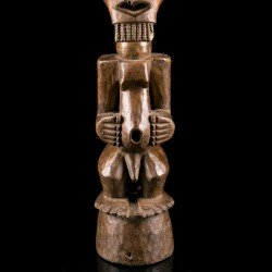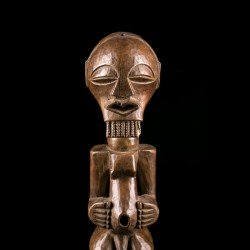 The strong point of this Songye statue is undoubtedly its patina, which naturally differentiates it from late sculptures with a black patina, artificially produced by African craftsmen for the tourist market. The purity of the patina on the statue we are offering for sale allows us without too much difficulty to date the work to the first part of the 20th century, probably around the time of the Second World War, when this statue was collected in situ by the patriarch of the family who entrusted it to us for sale.