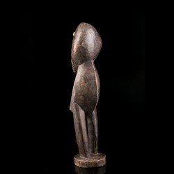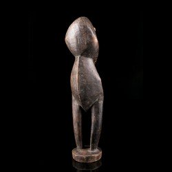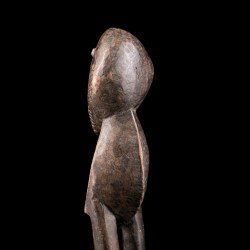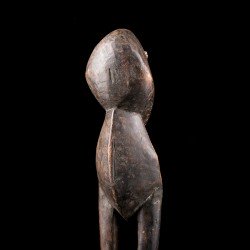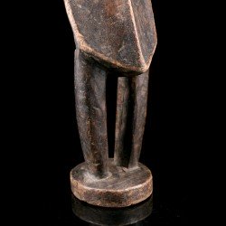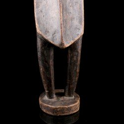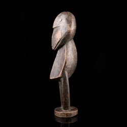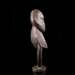 The design of the objects produced by the Lega are derived from their worldview and are largely inspired by the natural environment and the animal world. Some rituals require particular species of hunted animals to be presented in a certain way. In this case we find a major category of wooden animal figurines carved by Lega artists. Lega zoomorphic sculptures include stylized quadrupeds and birds. The figurine here is probably the Kwangwakwa bird, a symbol of a talkative person.