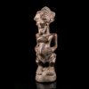 This African wooden statue originates from the Songye ethnic group in the D.R. Congo. The expressive, elongated face is encrusted with copper studs which give the nkishi most of its magical power. This Songye statue was intended to protect its owner against all the perils and in particular the risks of the bush.