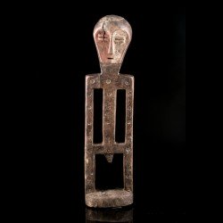 African statue of the most minimalist. The facial treatment, however, identifies him as Metoko. Stylistically close to the Lega, Metoko figures are differentiated by the use of often red pigments and streaks. Here, the curved face is separated into two parts with differentiated polychromy.