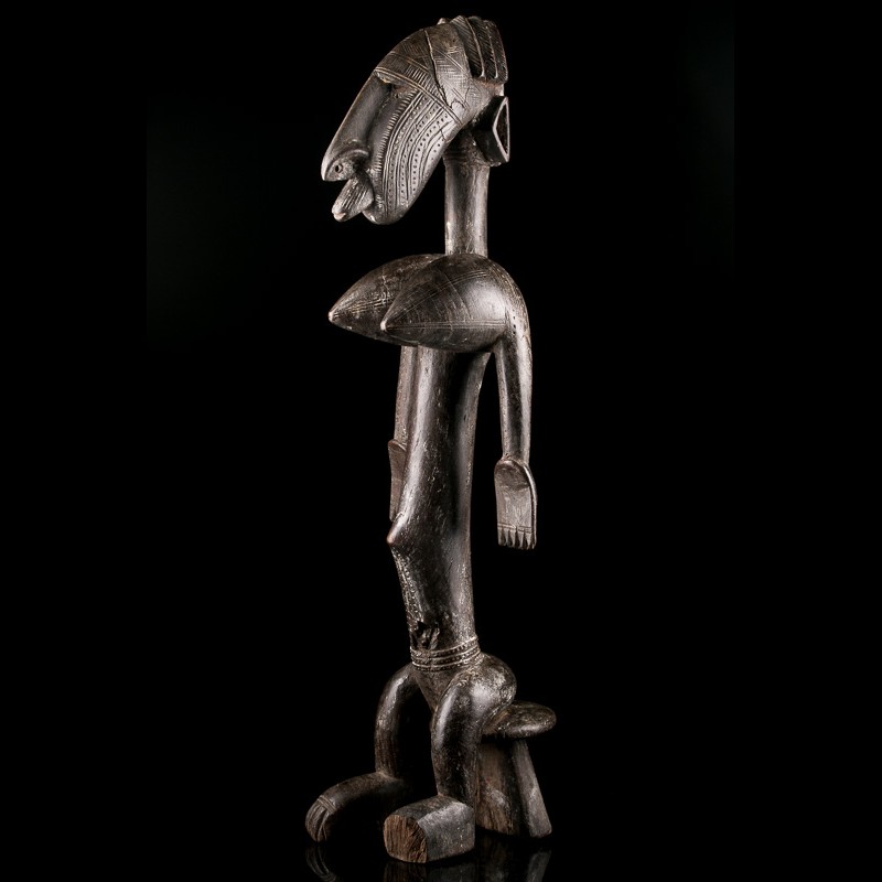 The aesthetic of this statue is supported by the presence of remarkable scarifications on the face and body. Segou style figure.