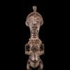There are a host of details on this remarkably sculpted and preserved piece. The sculpture itself with a very special treatment of the pubis since we observe linear scarifications, which is quite unique. The long neck is ringed. Above rests a cubist-looking head whose chin has an open mouth. Indeed, the nkishi, in his protective role, must by all means remove bad luck from misfortune. Thus, through this mouth, he repels evil with a cry.