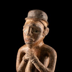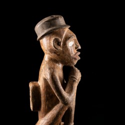 The presence of the Western hat on this piece may be surprising, but it is common for the settlers to have inspired Bakongo sculptors early on. Thus, while browsing the statues of this corpus, one meets colonial representations carved in wood or ivory.