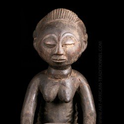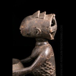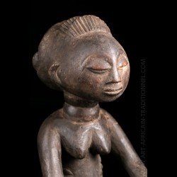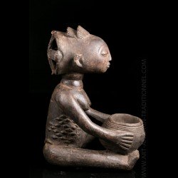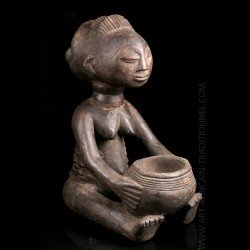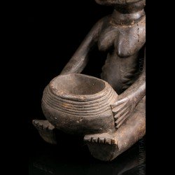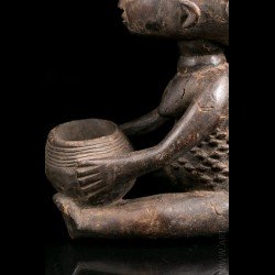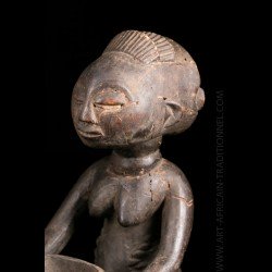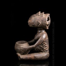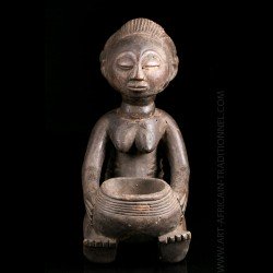 African works of art among the most famous Baluba sculptors, the figurines known as "cutting carriers" traditionally called "Mboko" are at the crossroads of two institutions: divination and prophecy. Their corpus reveals several workshops that flourished as the kingdom expanded. The tribal statue carrying the cup was placed next to the diviner during the trance and represented the wife of the spirit who possesses it.