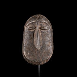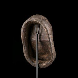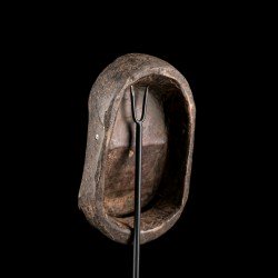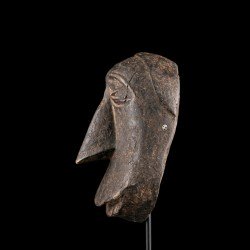 A simian mask, with a very original and surprising plastic expression. The Hemba sculpt two types of masks, including this one, composed of a face in the shape of a monkey, with an open mouth, chin and pointed nose, they are called Soko Mutu.