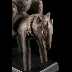 Very expressive, richly adorned with various elements such as nails, glass, excessive loads, etc., these African fetishes fascinate both by their form and by the magical power conferred on them by the Bakongo fetishers. The Kongo jumper that I am offering here is a piece of a type that could not be more rare.