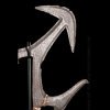 The blade is here composed of appendages and convolutions. There are also many engraved patterns. The handle is perfectly preserved, composed of a copper cord.
