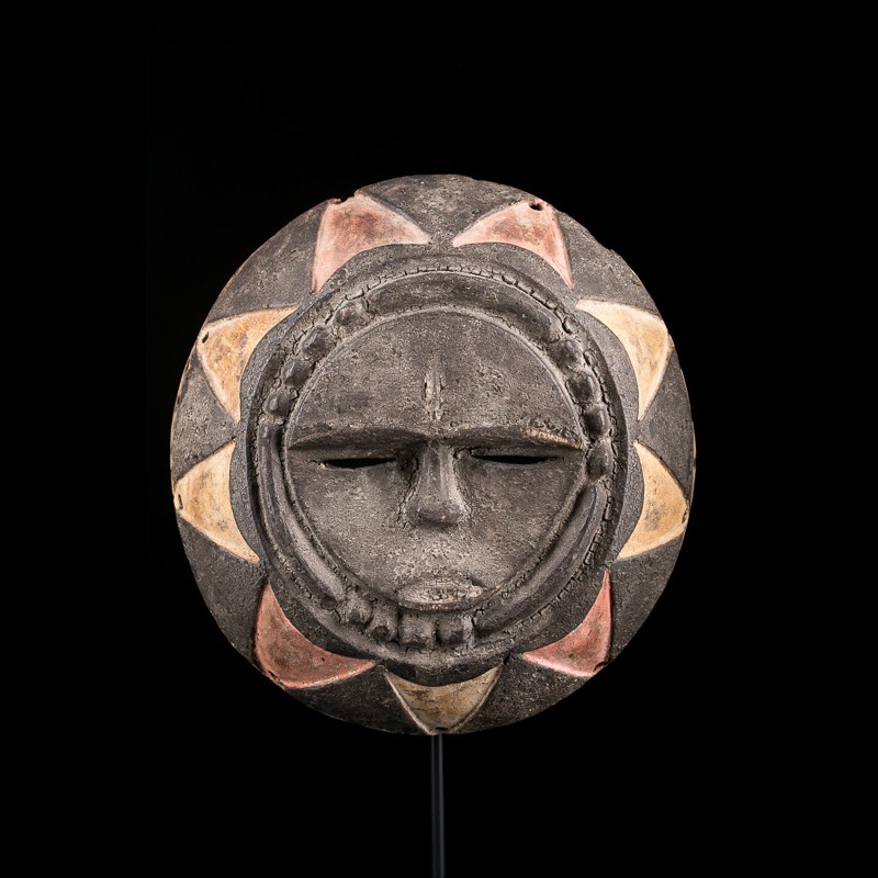 Lunar in appearance, this type of mask has a very specific function in Ekpo society, based on ancestor worship during funeral ceremonies. Beautiful polychromy, nice crust on the surface and interior patina of use.