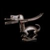 Thus, the arched body and bent legs served as a model for power and speed. The long curved and ringed horns evoke the mythical antelope born to Mousso Koroni, the foster mother who taught men the art of cultivating the land. They also suggest the stalks of millet bending under the weight of the ears, a symbol of fertility.