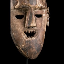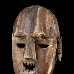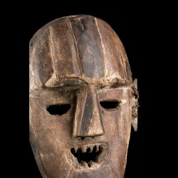 The Boa or Ababua masks are recognizable by their faceted forehead and the large protruding ears largely perforated often present. These masks are called pongdudu or kpongadomba. Their very particular aesthetic, in particular at the level of the ears, corresponds to a traditional aesthetic practice consisting in piercing the pavilions of women and men and placing a retractor there.