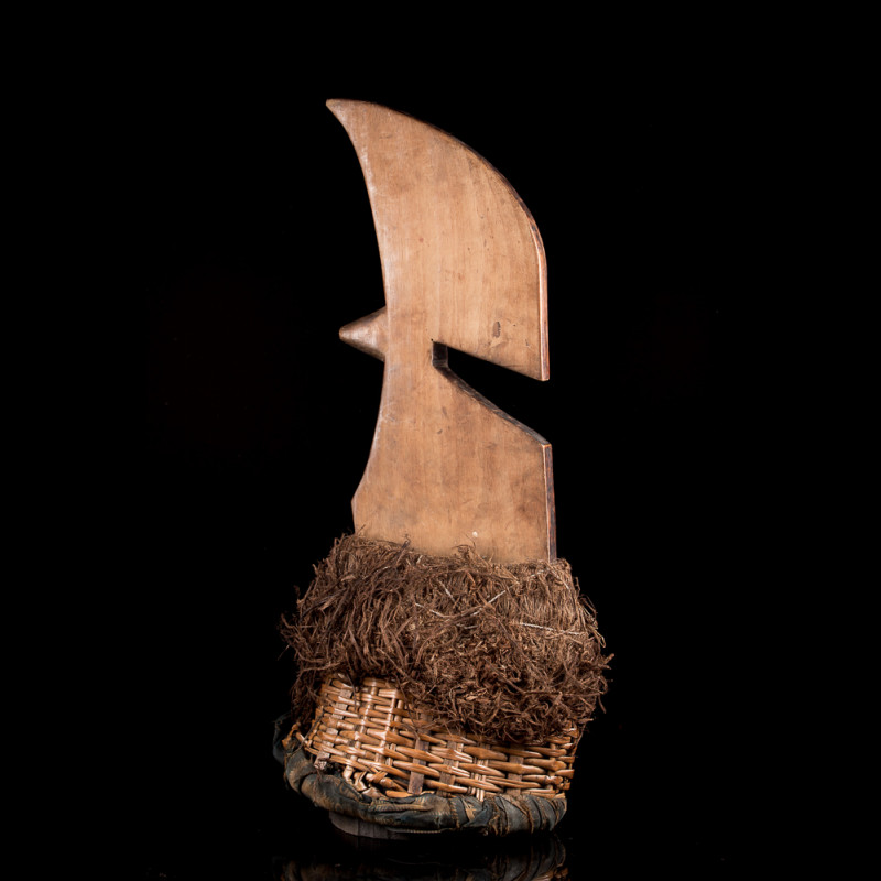 This African mask from the northeast of the Democratic Republic of Congo, in the Ubangui region, represents a faceless migratory bird. Their artistic production remains rare and limited to a large number of crests with geometric shapes and abstract masks worn during agricultural festivals.