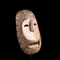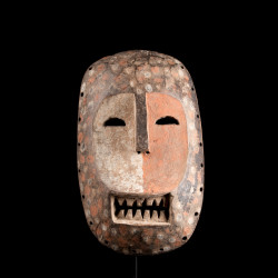 Mask with typical characteristics of Komo / Kumu masks, concave face enhanced with red and white, it is probably a natural pigmentation and period. These masks with simplistic, cubic features are real masterpieces. Dry and worn wood, beautiful collection object dated from the middle of the 20th century.