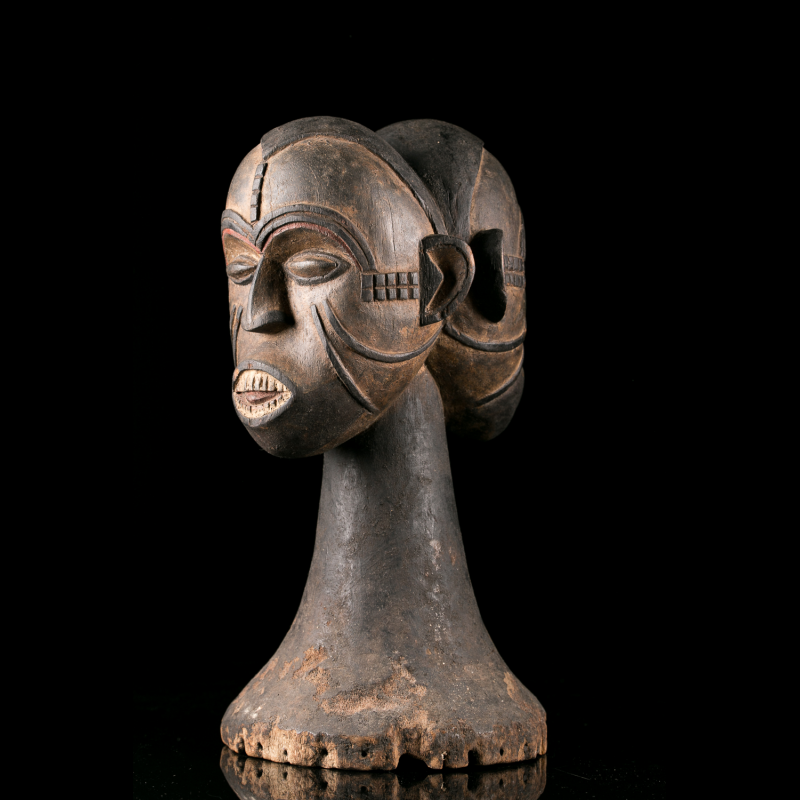 Worn on top of the head, this crest mask is associated with agricultural festivals, Christmas plays, and funerals.