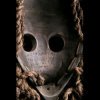 In order to support the mask's circumspect gaze, a band of white pigment envelops the eyes.