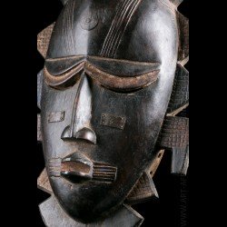 Among the Muslim Mandé, the buffalo represents a sacrificial animal of great importance. It is illustrated in this mask with a scarified human face.