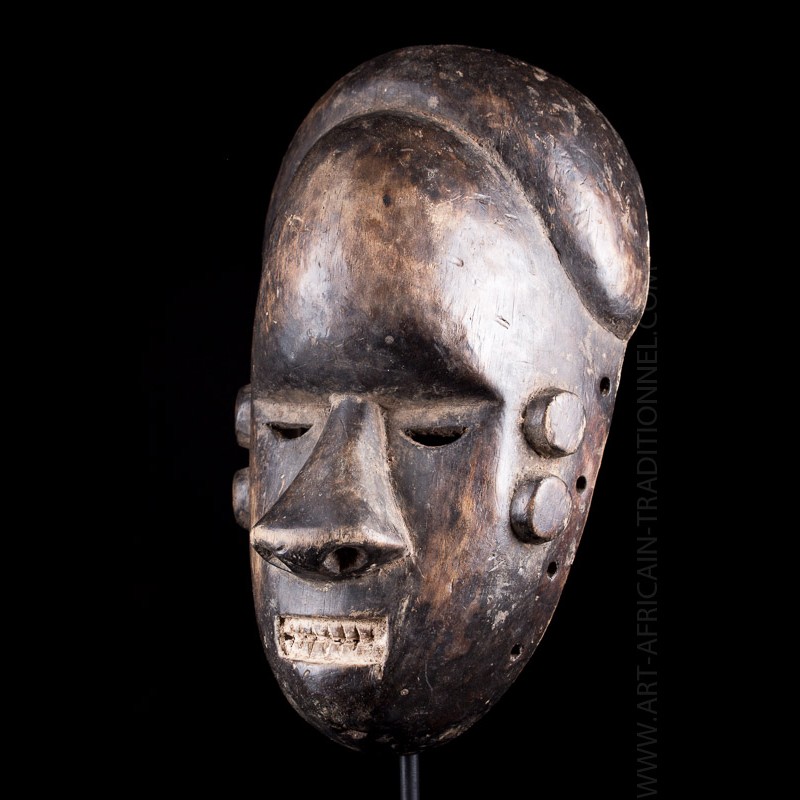This African mask Salampasu presents a very expressive facies, sharp and sharp teeth tinged with white.