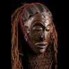 The Pwo mask brings the first female ancestor to life. classic scarifications are present on the forehead and on the underside of the eyes. The original cord headdress is still present as well as this strip of red fabric typical of traditional costumes. This mask occurs during the initiation rites of young boys which bears the name of Mukanda.