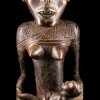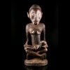 Beautiful African statue (58 cm high) depicting a Phemba or Pfemba type maternity home among the Bakongo. Sitting cross-legged, the mother holds the child in the palm of her hands. We find on the torso the scarifications worn by women for aesthetic and ritual purposes. The headdress also bears similar patterns.