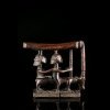 The copy that I am offering you here consists of a seat supported by two figures located on the back of their mount, the horns of which join the seat. A similar copy can be found in the work Luba: aux sources du Zaïre, F. NEYT, p. 186, see photo.