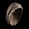 This round, or almost round, mask type of the Baule people, called ‘moon mask’, symbolises natural phenomena such as the moon and the setting sun. These masks make their appearance at the beginning of the grand mask dances of the Baule people. The present, unusual 'moon mask' is made of light, With a finely manufactured plaited coiffure, round eyes, a small mouth and typical tribal scarification marks. With very good usage patina on both the outside and the inside.Origin : private collection, FranceDating : 1960'sSize : 26 x 20 cmMaterial : wood
