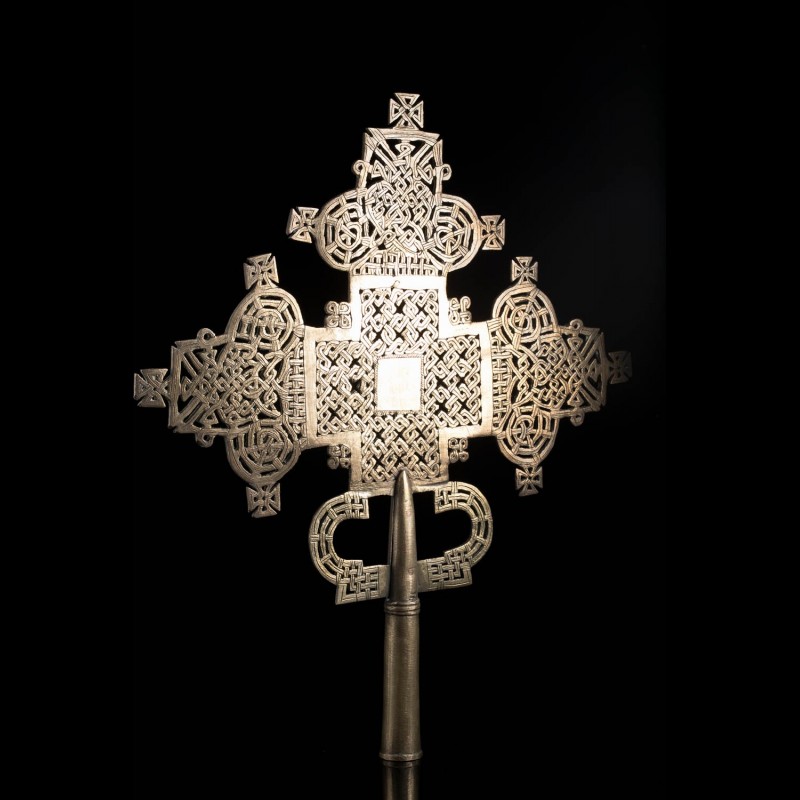 The size of the crosses may vary from the simple pendant to the imposing processional cross. It is a central motif in the decorations of Ethiopian art in murals and manuscripts. The oldest crosses are often made of iron, copper, bronze or precious metal. Those before the 15th are processional crosses, characterized by a shaft that allows to adapt a handle to transport it during processions. The bronze crosses were cast by the lost wax process.