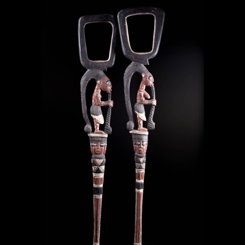 This pair of authentic sticks rarely meets. Offered exclusively by our gallery, the reference in tribal art in Belgium.