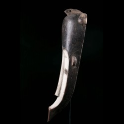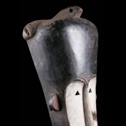 Among the Fang in Africa, as in any structured society, it was necessary to regulate through masks. In the Ngil society, the great initiate (Ngang) helped by his officiants, roamed the villages concealed under a mask such as this one, lying down and covered with a thick layer of kaolin.