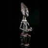 This statue is a representation of woman to child embodying the matrilineal traditions of the Akan honored in a cult of fertility. On the morphological level, the neck is stretched and ringed, as is often the case in the Koulango art corpus, the body is quite narrow and slender. Verticality is supported by the large ogival crown. Presence of pearl necklaces.