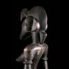 Katyeleo figure : traditional african art from Senufo people, Ivory CoastSenufo Katyeleo type statue of a seated female with crest shaped hair style, large hook shaped lock of hair to the front. The face with small round eyes and muzzle type mouth with bared teeth; scarification marks to the side of the mouth and head. The naked body with engraved lines to represent scarification marks; large breasts and rounded stomach. Seated on a four legged stool.The Senufo live in Mali on the Ivory Coast and the name means ‘the people who speak Sene’. They have a matrilineal society though many of the secret societies that are concerned with the welfare of the community are only open to man. One of these is the Poro society who carry out their initiation ceremonies in a sacred wood dedicated to Katyeleo, the name given to the supreme goddess of the Senufo which means ‘old mother’.