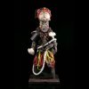 Beautifully balanced and refined fertility doll from traditional Baggara art in SudanTraditional african wooden statue of a female with long slit eyes and scarification marks to the lower cheeks made by Baggara carver in Sudan. The top of the head with glass beads and cloth cap with coins to the front. To the body a cloth dress with numerous colourful glass beads to the arms, neck and body and suspended from the waist. Around the body a linked chain with shells, coin and amulet case attached.Figures such as this are given to brides at their wedding to promote fertility. They are made with potent charms and spells to ward off evil spirits and are also believed to promote healthy babies and prevent miscarriage. The bride will carry the doll on her back as she would a real baby in order to bring fertility. Once a child is conceived and born safey the doll is placed on the family altar until it is passed onto the eldest daughter at her wedding.Origin : private collection, FranceDating: 1960 Size : 36 x 11 cmMaterials : wood, beads, shells