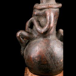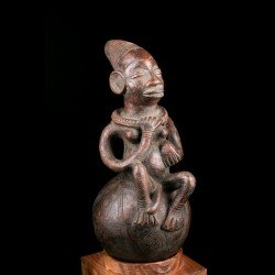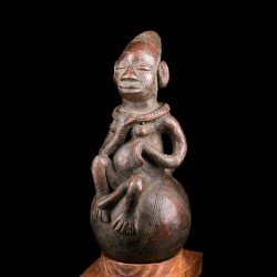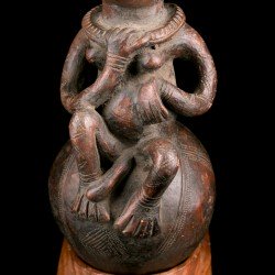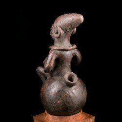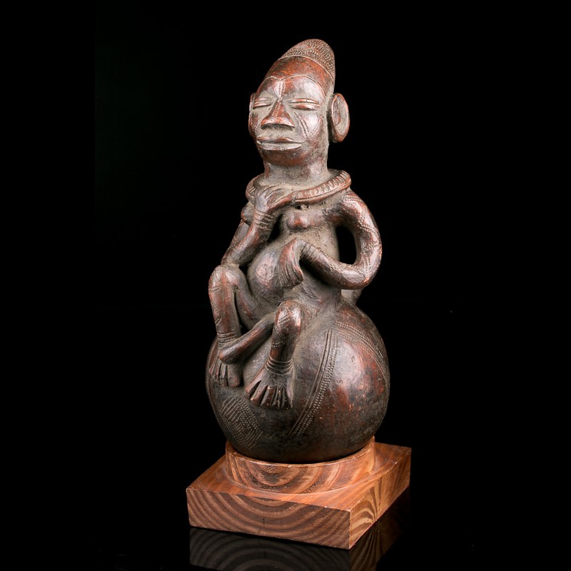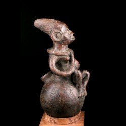 This jar is the perfect embodiment of the Mangbetu beauty ideal. They were intended to collect palm wine there. The Mangbetu are known for their cranial deformation.