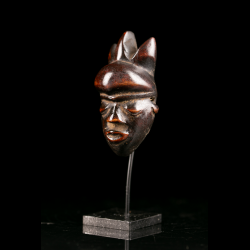 The piece is immediately appealing for the accuracy of its typology, the respect of traditional iconography, and the expressive quality of its carving. The face, structured by a powerful forehead, recessed eyes, slightly open mouth, and energetic treatment of the volumes, faithfully reproduces the great aesthetic codes of monumental Pende masks in a reduced format of rare intensity.