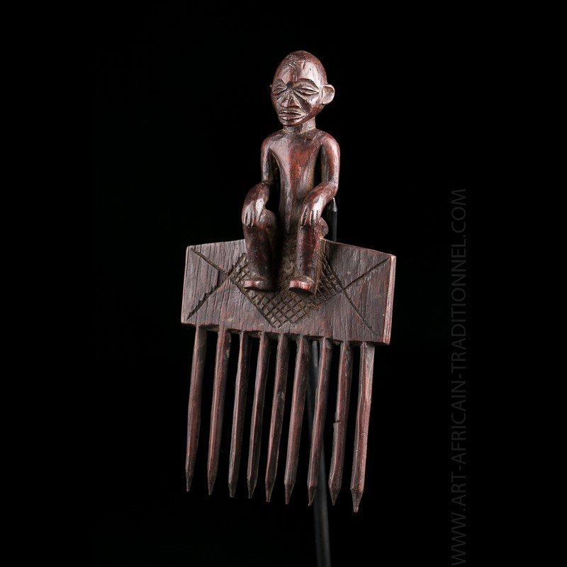 This pretty traditional comb surmounted by a figurine is very finely carved. It is an object of ethnographic and historical interest in addition to being a work of art in its own right. Excellent state of conservation.