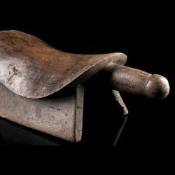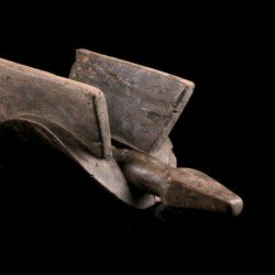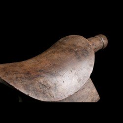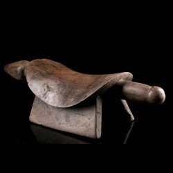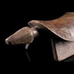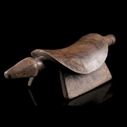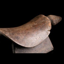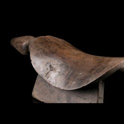 Appuie-nuque africain monoxyle doté d'une assise incurvée pour y placer la nuque. Les deux extrémités sont dotées d'appendices : d'une côté une tête très stylisée, de l'autre la queue. Belle patine ancienne témoignant de l'usage intensif de la pièce. De nombreux groupes ethniques d'Afrique ont recours à ces objets très personnels. Celui-ci est d'origine Bembe.