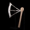 Ce type de hache outre leur éventuel usage comme arme de guerre, servait principalement au prestige de leur propriétaire. Il était un support de prestige en particulier lorsque, comme ici, de nombreuses décorations y était visibles. Signe supplémentaire des moyens de son commanditaire, la peau de serpent, matériau luxueux.