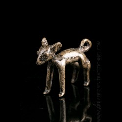 Figurine africaine représentant visiblement une antilope. Cette pièce provient du Ghana, plus précisément des Akan, un groupe ethnique connu historiquement pour s'être enrichi par le commerce avec les Européens dès le 17ème siècle. Les statuettes en bronze africain comme celle-ci servaient d'ailleurs de poids à peser l'or, minerai qui était échangé entre autres contre des perles venant d'Europe, dont raffolaient les dignitaires Akan.