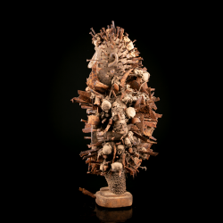 Ces figures tribales, souvent anthropomorphes, sont conçues par des spécialistes religieux appelés nganga.
