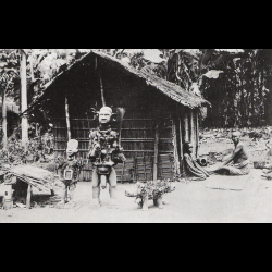 À cette fin, le fétiche peut comme c'est le cas ici, présenter un bras levé qui est parfois accompagné d'une arme. Le faciès est généralement expressif afin d'accentuer la menace.