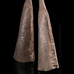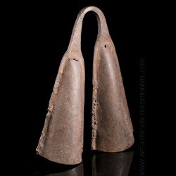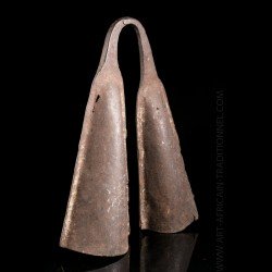 Cette double cloche africaine fait partie des idiophones dans l'art tribal africain. Elle était frappée à l'aide d'un petit gong en bois. Ce type d'instrument traditionnel intervenait dans un ensemble instrumental accompagnant les danses dans les villages d'Afrique subsaharienne, en particulier en République démocratique du Congo.