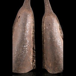 Certaines versions très petites pouvaient être portées aux chevilles par les danseurs tandis que les plus grands exemplaires tels que ceux-ci étaient utilisés à la main. Voir photo annexe, source africamuseum.