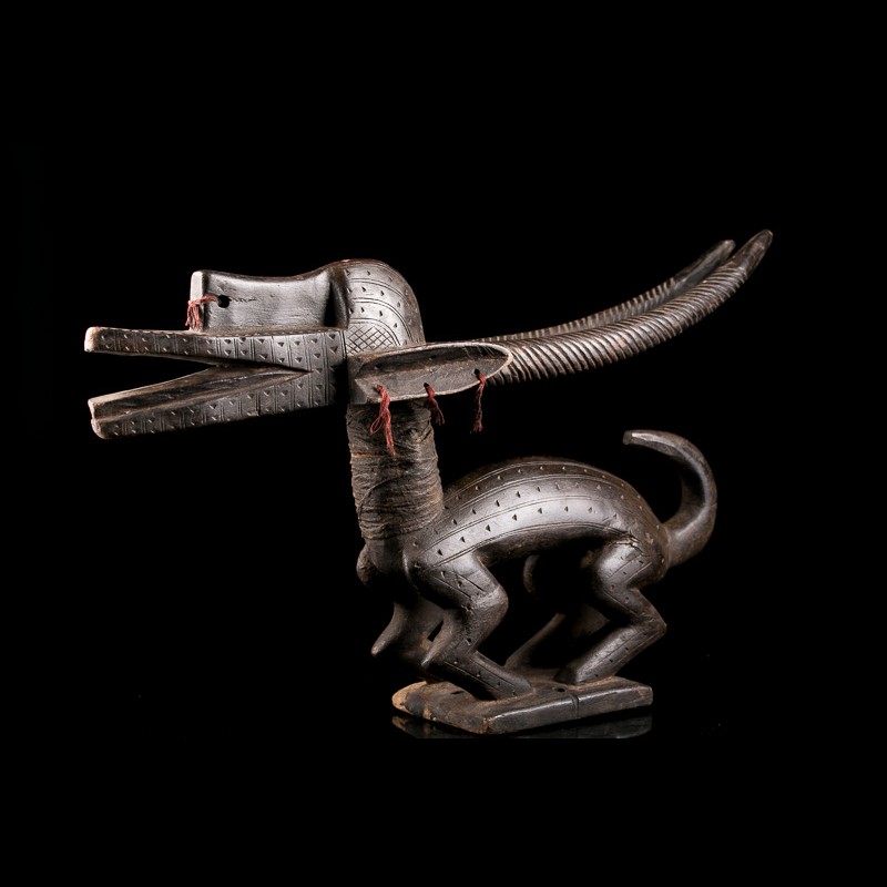 Les masques tels que ce cimier, figurant une antilope, étaient exhibés par deux, un mâle étant toujours associé à une femelle. Ils évoquaient respectivement le soleil et la terre, et l'analogie entre la reproduction et l'ensemencement du champ. On appréciera les formes radicalement géométriques et abstraites de cette pièce remarquable. Chaque élément du corps est lié à une valeur dont doit faire montre le cultivateur.