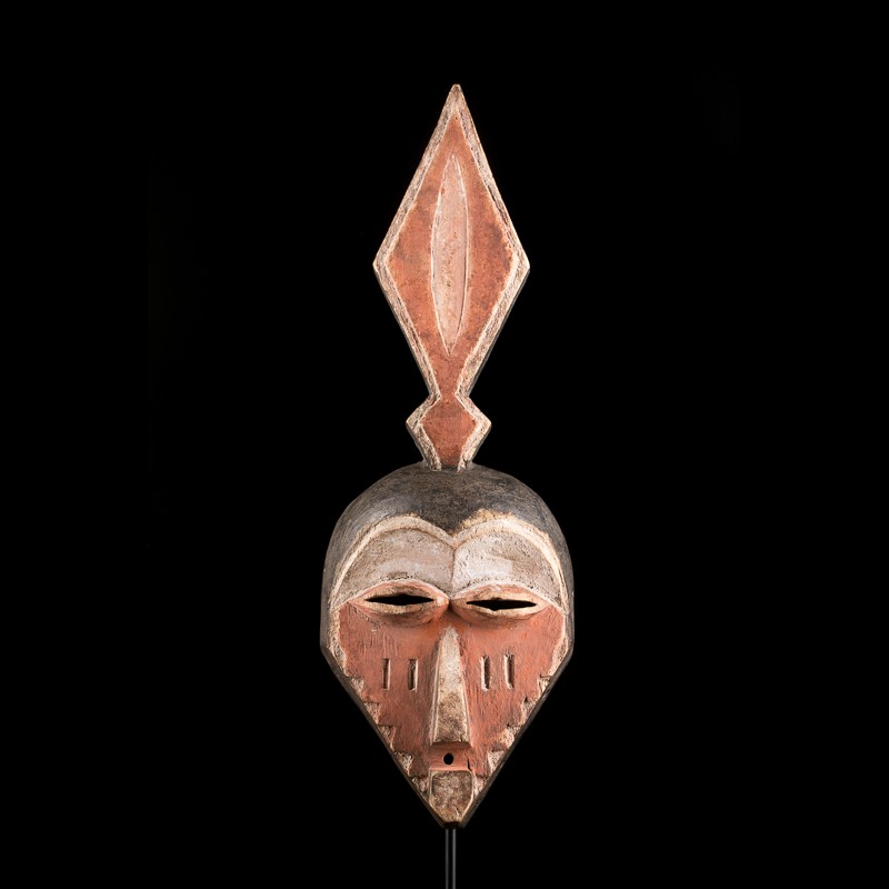 Ce petit masque africain très abstrait sortait à l'occasion des festivités marquant la fin des initiations ainsi qu'au cours des rites agraires lors des semailles du millet. Il s'agit d'un masque traditionnel portant le nom de munyangi, originaire des Bapende orientaux connus pour leur masques très stylisés. Les excroissances au sommet des masques de ce type ne représentent pas des cornes mais les armes du chef.