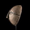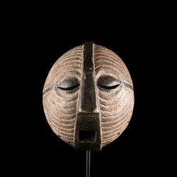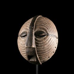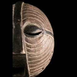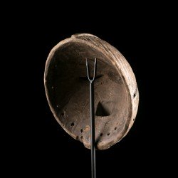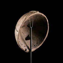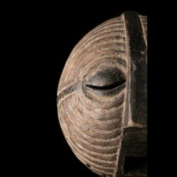 Les artistes Luba sculptent des masques impliqués dans la société bwadi bwa Kifwebe. On les identifie aisément par leurs formes généralement plus douces que ceux de leurs voisins Songye ou Kalebwe, qui sont, eux généralement plus géométriques et anguleux. Un type plus spécifique de masques Kifwebe : ceux de forme quasi circulaire comme celui que je vous propose ici. Les stries, concentriques, sont bien présentes et symbolisent le lien entre le monde des vivants et celui des ancêtres.