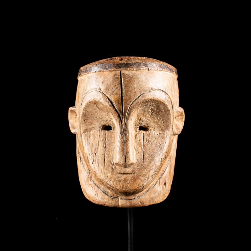 Il s'agit ici d'un masque africain ngontang au visage incurvé en forme de cœur.