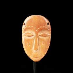 Les petites masquettes en os chez les Lega, un peuple d'Afrique centrale, sont des objets rituels associés au système de société Bwami. Ces masquettes, souvent de petite taille et finement sculptées, jouent un rôle important dans les enseignements moraux et sociaux du Bwami.