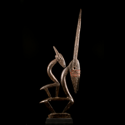 Bel exemplaire classique de masque cimier Tyi Wara ou Ci Wara des Bamana, un groupe ethnique du Mali. Cette célèbre typologie d'objet d'art africain figure l'antilope hippotrague et était porté au cours de rites liés aux fêtes agraires Bambara.
