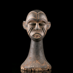 Porté sur le dessus de la tête, ce masque cimier africain Idoma est associé aux fêtes agricoles, aux pièces de théâtre de Noël et aux funérailles.