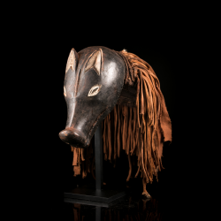 Les masques Ngulu des Chokwe (Angola, R. D. Congo) figurent parmi les formes les plus rares et les plus recherchées de la tradition sculpturale chokwe. Associés à des fonctions judiciaires, protectrices ou liées à l’autorité, ils intervenaient lors de rituels destinés à rétablir l’ordre et à repousser les influences néfastes.