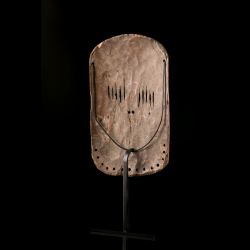 Masque africain "planche" du fait de sa planéité ; on l'identifie aisément comme un masque traditionnel ekanga provenant des Mbole ou Yela en République démocratique du Congo avec sa face des plus simples parcourue de stries parallèles faisant office d'yeux. Ce masque est lié à la société Lilwa, l'un des plus importantes chez les Mbole.