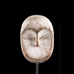 Cet authentique masque tribal africain représente le chimpanzé dans l'art africain des Hemba, nommé Soko Mutu. Il était porté à la main lors de rites destinés à la protection du foyer et devait favoriser la fertilité.